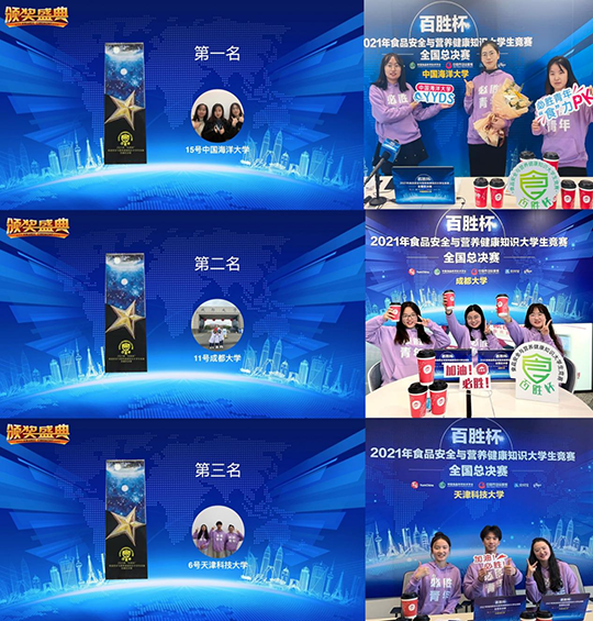 12月5日,2021年“百胜杯”食品安全与营养健康知识大学生竞赛全国总决赛于北京举行。经过五轮激烈角逐,中国海洋大学代表队脱颖而出,获得本届“百胜杯”全国总冠军。成都大学和天津科技大学代表队分别获第二、三名。