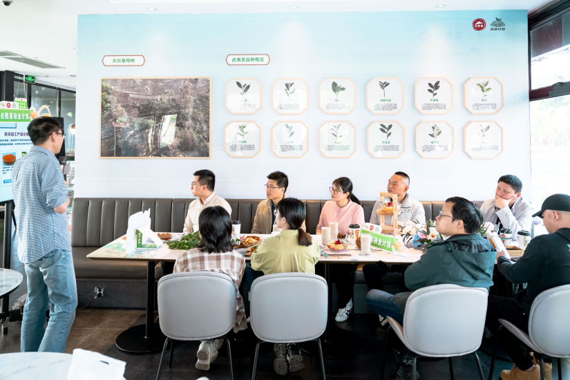武夷山以其丰富的自然生态资源、丰富的生物多样性,优越的生态环境,为茶树的生长和繁育提供了得天独厚的条件,造就了茶树的“品种王国”。本次的必胜客扶业计划还结合武夷山大红袍母树、必胜客扶业计划种植区生态茶园以及武夷茶品种等元素特别打造了生物多样性主题必胜客之茶文化餐厅,并邀请来自武夷山的茶农及制茶技术人员到餐厅内开展必胜扶业下午茶,福建省省内茶科专家围绕茶叶与新茶饮的话题为其开展了干货满满的理论培训。