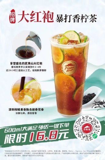 今年,“必胜客扶业计划”将扶持区域拓展至武夷山,该地区的大红袍茶叶被纳入“扶业计划”,通过对项目地注入扶业专用资金,邀请福建省内茶科专家为茶农开展培训,促进茶叶种植标准化,推进茶叶提质增效。必胜客将武夷山大红袍茶叶研发成大红袍葡萄香柠茶、大红袍手打柠檬茶等果茶系列饮品;大红袍厚乳奶茶、大红袍红豆啵啵坚果奶茶等奶茶系列饮品,还推出了大红袍冰淇淋,将“岩骨花香”的醇厚滋味和传世武夷源远流长的茶文化带给更多消费者。
