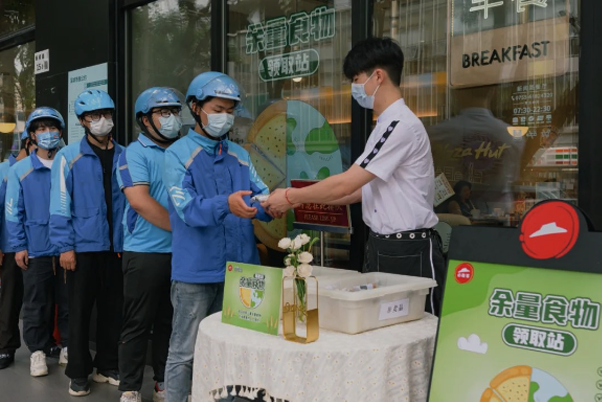 外賣騎手在深圳必勝客食物驛站領取余量食物