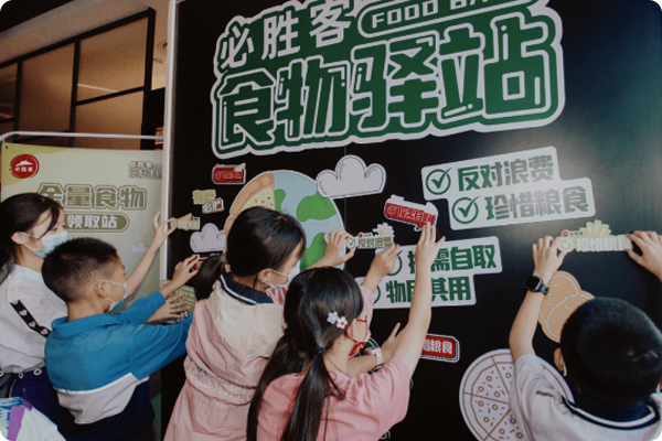 作為餐飲業領導品牌的必勝客,一直踐行綠色可持續,打造綠色環保低碳餐廳。依托百勝中國強大的數字化能力和供應鏈能力,必勝客始終致力於了解消費者的真實需求,充分利用科技在采購、生產、銷售等環節通過科學的管理提升效率,從源頭著手減少食物和原料浪費,但受客流、天氣等動態因素影響,部分餐廳會有少量未售出余量食物,通過在餐廳設立 “食物驛站”,可以進一步減少餐廳食物浪費。